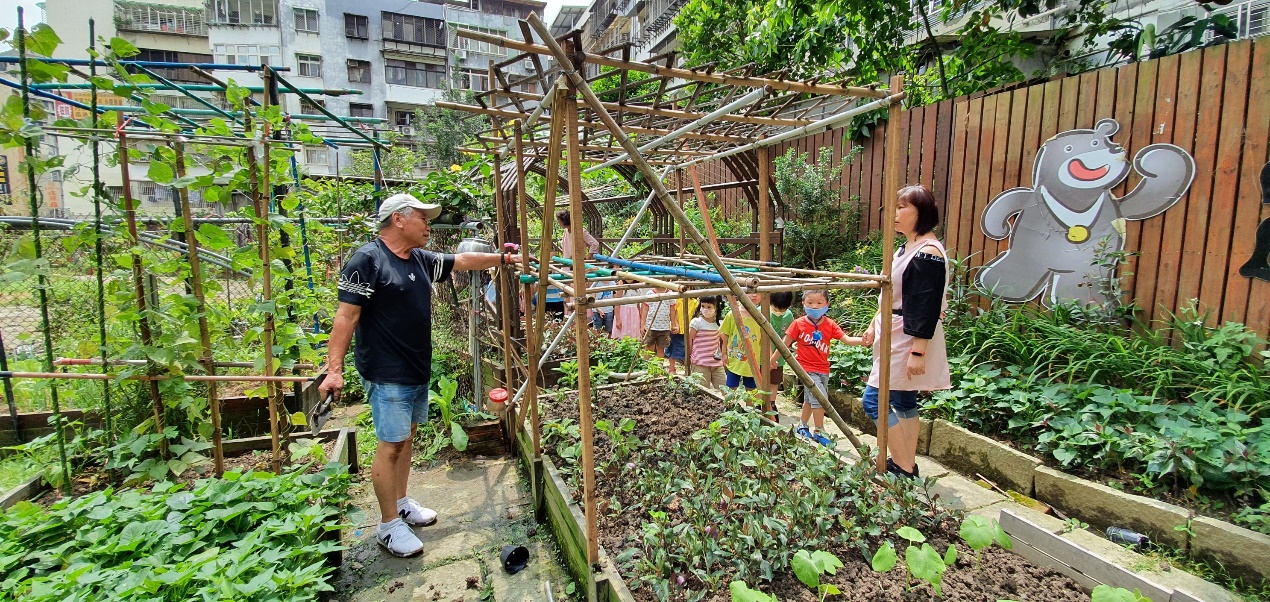 更讓人意外的是志工們還到北投區養馬場拿馬糞取代肥料,在土壤鬆軟度高的情況下,種植出的蔬果自然肥美、天然、無毒更不用花費任何費用,真是一兼二顧。田園基地的建置除了增加綠覆率,土壤介質也使雨水回歸大地,減少暴雨造成淹水的可能,對於城市防災也有相當程度的貢獻。